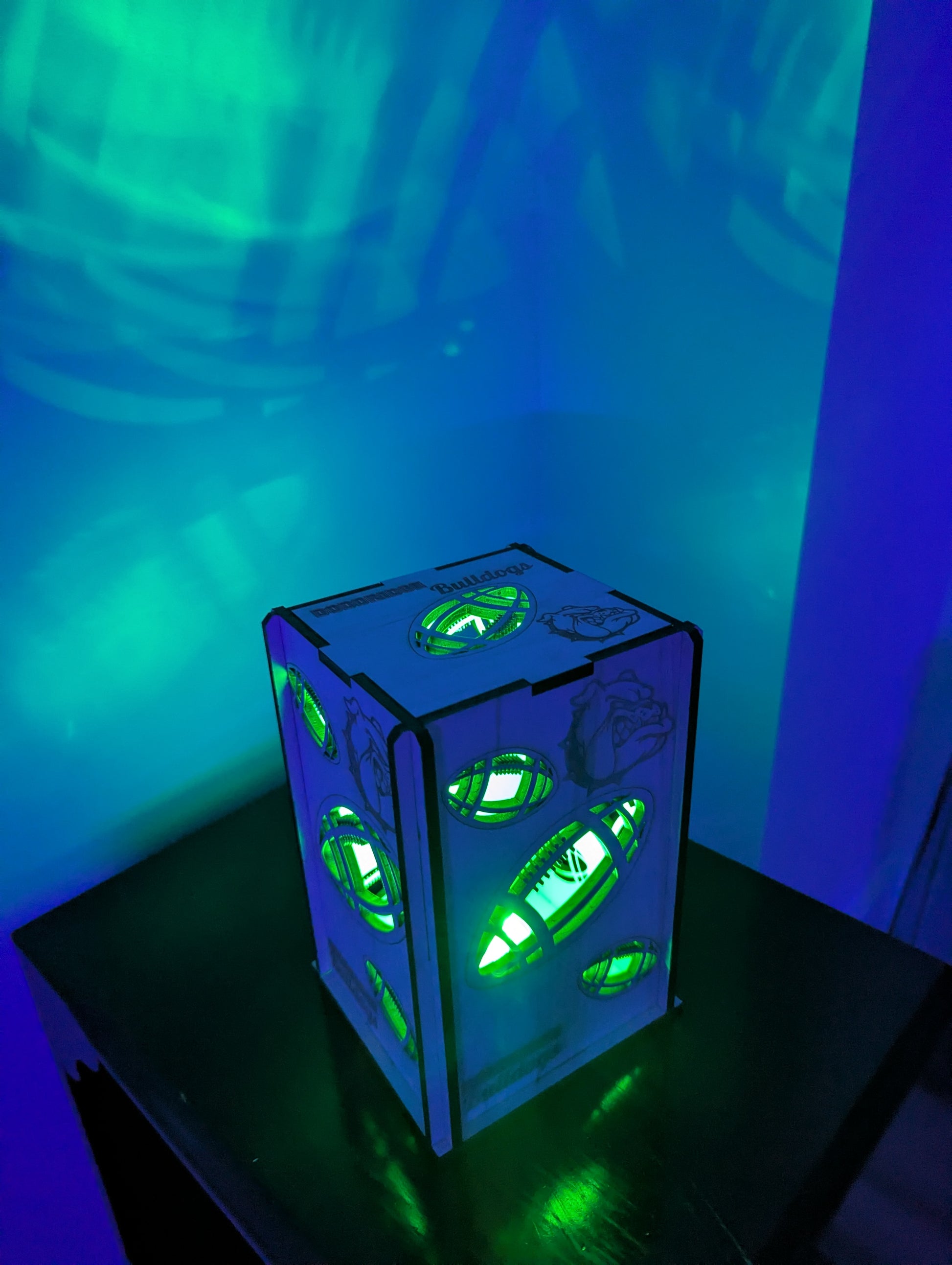 Choose from a variety of designs — from festive snowflakes to custom team patterns — each precision-cut to cast dazzling patterns of light on nearby walls.