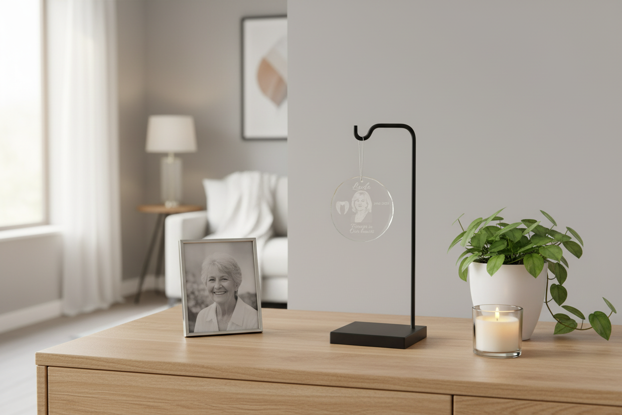 A meaningful tribute handmade by a small business. Each memorial ornament is crafted with care to honor your loved one's memory and provide lasting comfort.