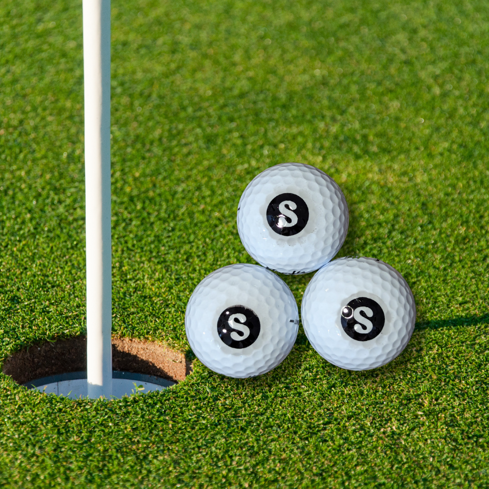 We offer two styles of personalized golf balls, each available in a three-pack, featuring a custom stamp on the set of balls—ideal for any golf enthusiast. These make a great gift!